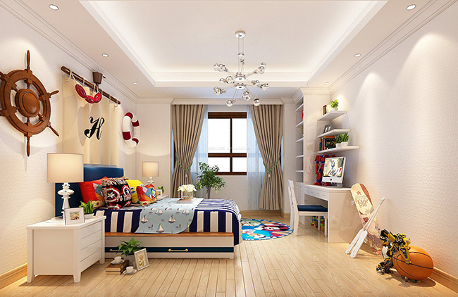 最后,兒童房中的家具如果有棱角的家具商品要采用圓弧的收邊等。然后選擇裝飾材料時,無論是墻體還是地板,需要采用環保材料,這樣能讓室內的污染減少。兒童房內布置的柜子和書桌等家具應該選擇高度比較矮的,便于孩子自己使用;在房間功能性上更多偏向于娛樂性更多一些。